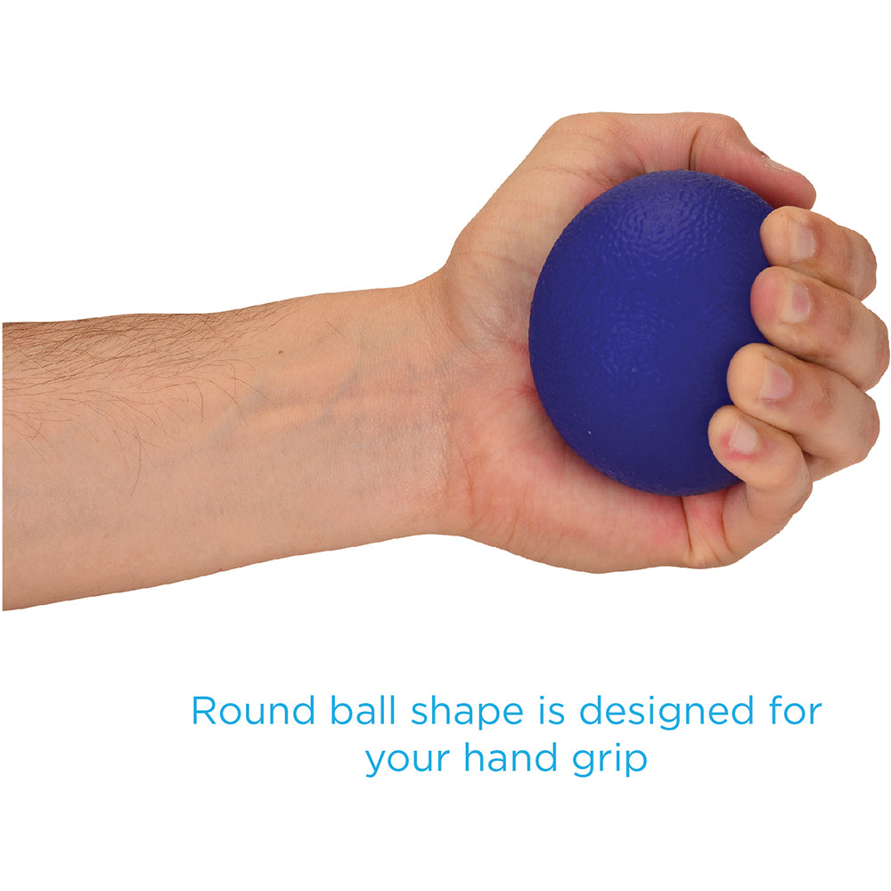 - CHOOSE RESISTANCE LEVEL BY COLOR. The Squeeze Ball comes in 2 resistance levels. The ORANGE Squeeze Ball has a medium resistance that is more ideal for versatile for stress, recovery and strengthening. The BLUE Squeeze Ball has a firm resistance that is mostly for strengthening.